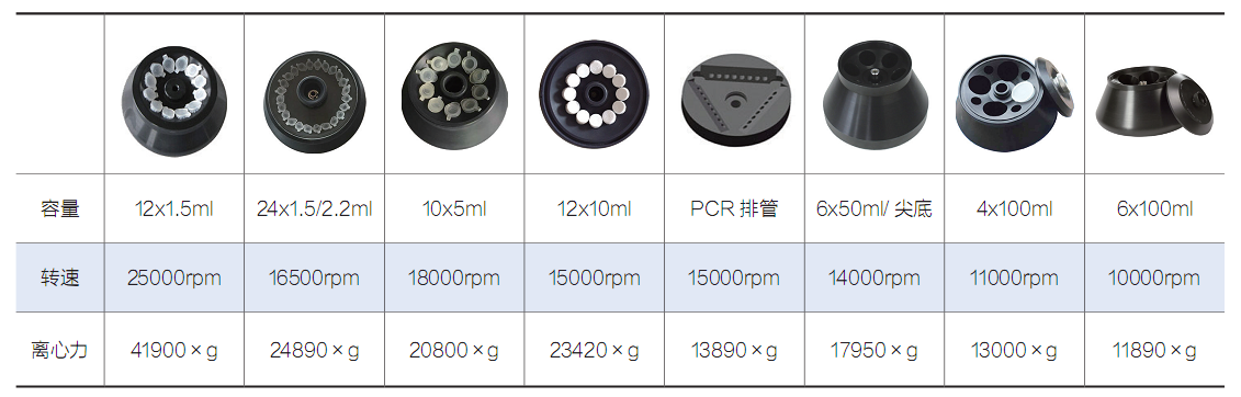 轉子類型 | 序號 | 轉子容量 | 轉速/離心力 | |